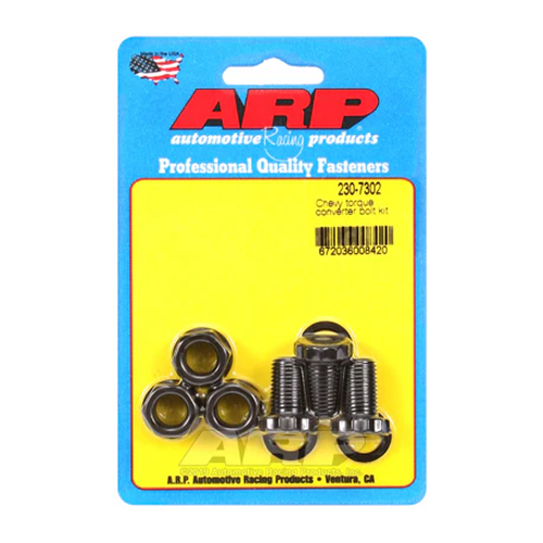 ARP torque converter bolts are manufactured from 8740 chromoly steel and feature 200,000 psi tensile strength. Add a set to your drivetrain, and shearing torque converter bolts are a thing of the past.