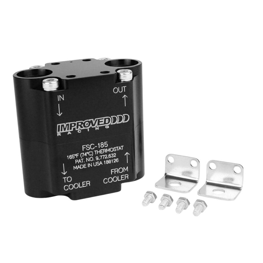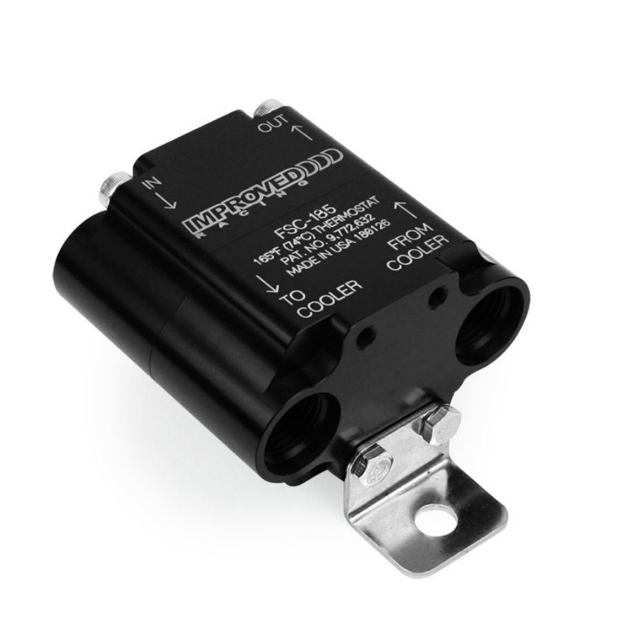 Improved Racing's oil thermostat is a universal solution that can be used with any oil cooler on any vehicle. The device's unique internal design - the result of over a year of research and development - ensures a low pressure drop by placing the valve mechanism out of the direct oil flow when the valve is closed. The thermostat also boasts one of the most compact designs on the market.
