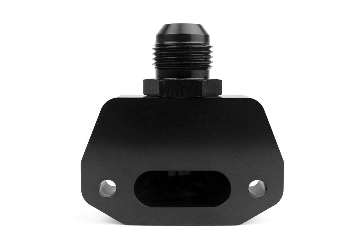 The adapter also features two 1/8" NPT ports for oil temperature or pressure sensors, or for a turbo oil feed supply line.