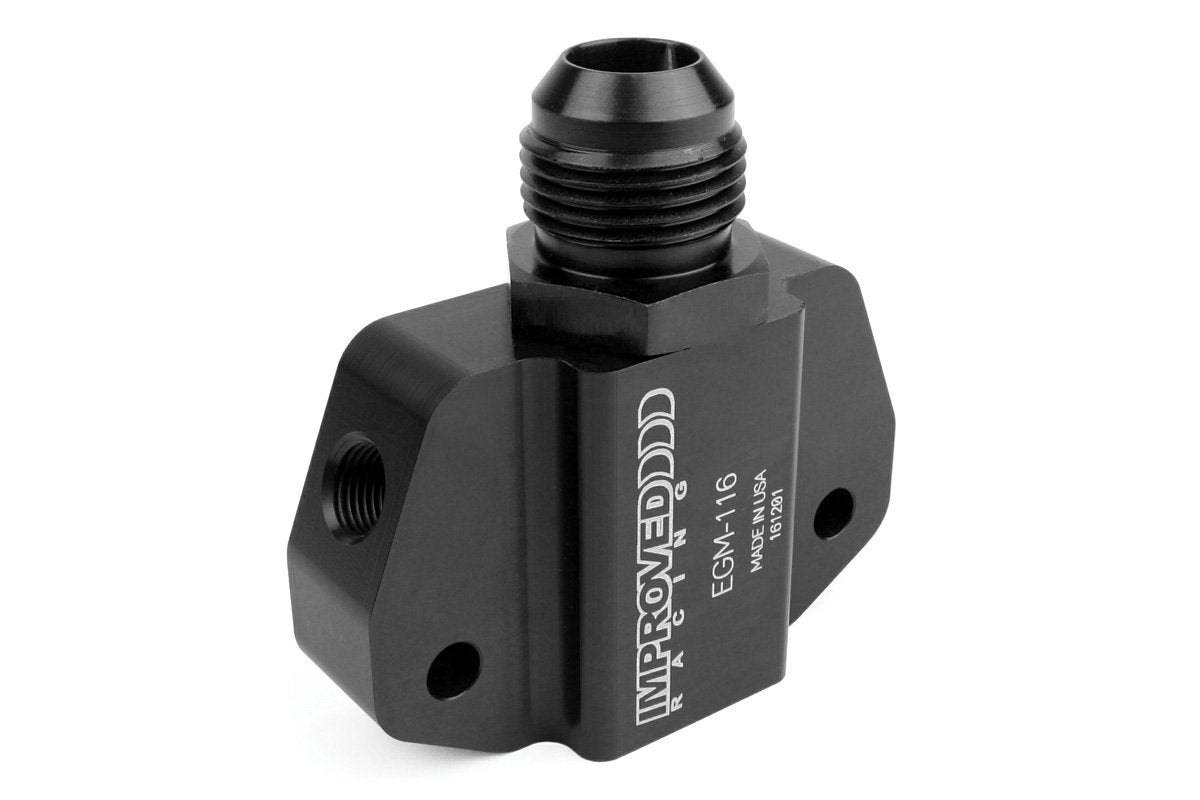 Improved Racing's oil accumulator adapter makes it easy to plumb an Accusump to your GM LS-series engine. The unit bolts to the factory oil pan and accepts a standard -8AN, -10AN, or -12AN line to your Accusump.
