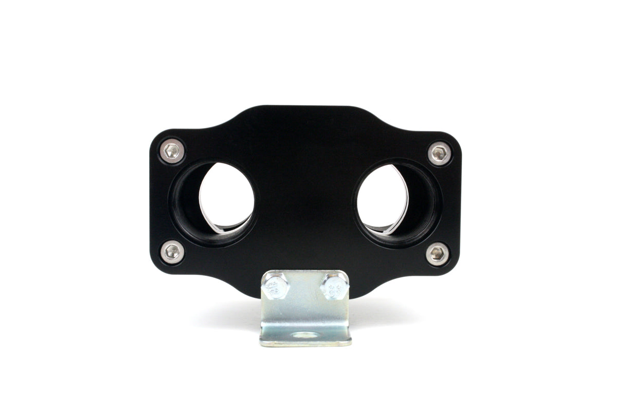 The thermostat bypasses the oil cooler until 180F (82C) and forces all oil flow through the cooler by 200F (92C). It is available with fittings for -8AN or -10AN lines. The included mounting brackets provide multiple mounting configurations.